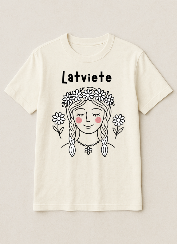 Elegants un patriotisks T-krekls ar uzrakstu "Latviete", "Tautu meita" vai bez uzraksta.